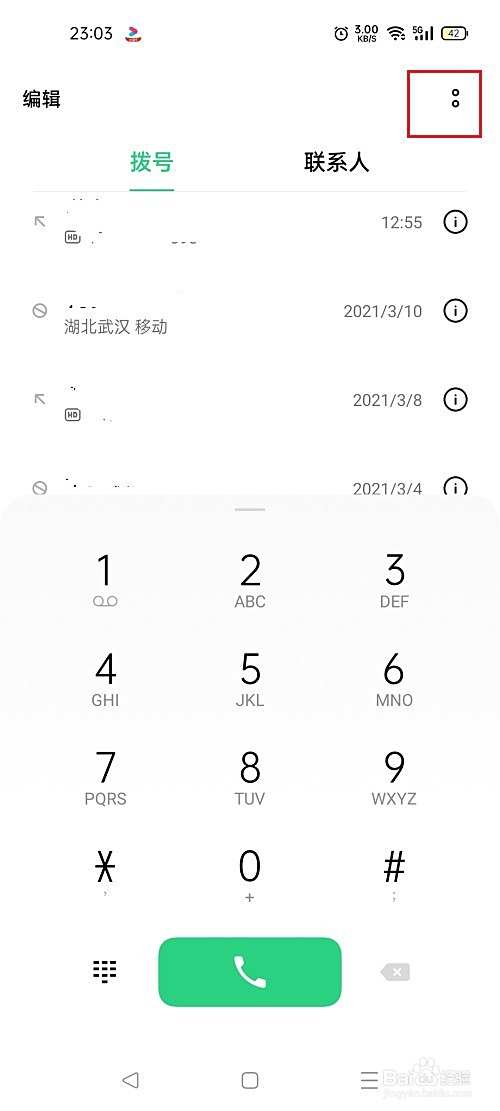 第二步点击拨号图标之后,然后点击右上方的三点图标