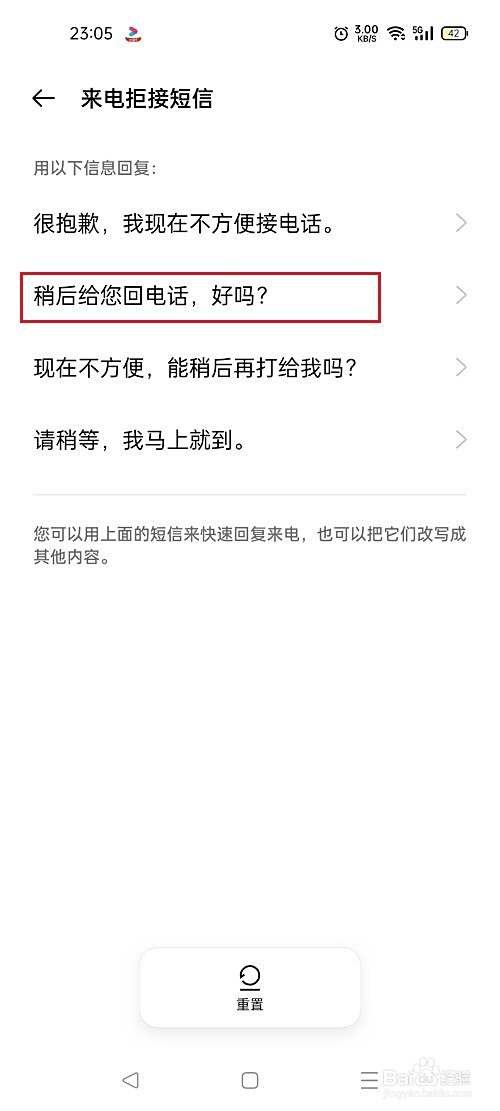 第五步进去之后,可以设置来电拒接短信,根据需要设置