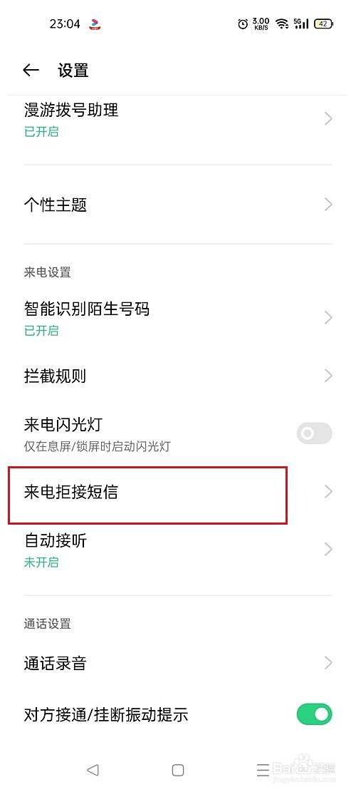 第四步进去oppo手机设置之后,点击来电拒接短信