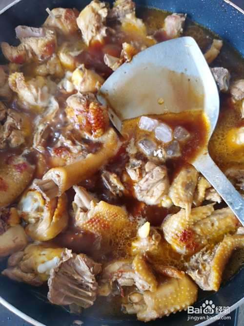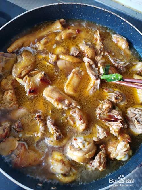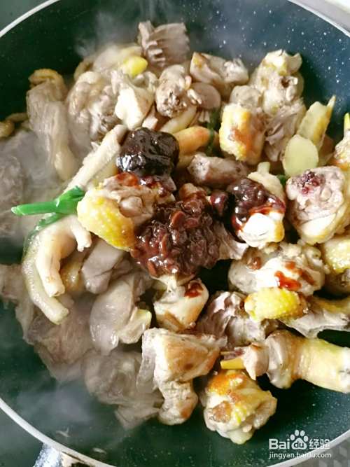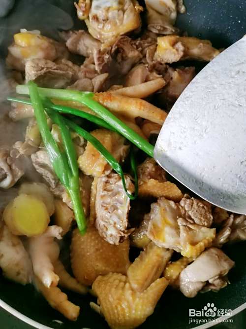 加入足量的清水,漫过鸡块,挑去葱,姜
