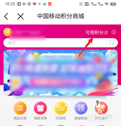 在中国移动手机营业厅内点击积分图标。