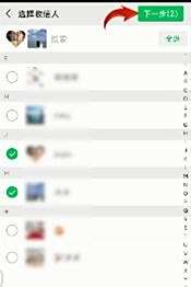 最后:选择你需要群发的人,点击下一步,输入文字发送就可以了。