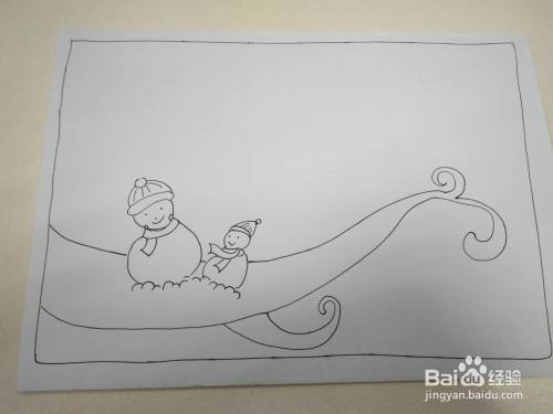 在手抄报的左半部分绘制折线框,在折线框内绘制竖线