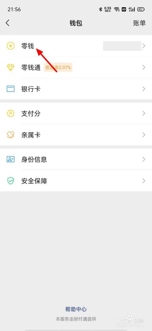 在钱包页面,点击零钱。