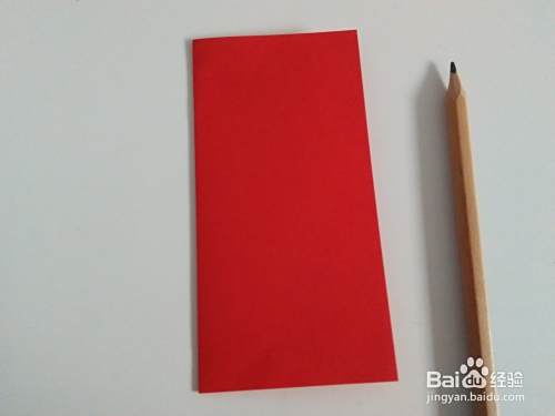 首先准备好一张彩纸,一支笔,一把剪刀待用。先把彩纸从中间对折,如图二。