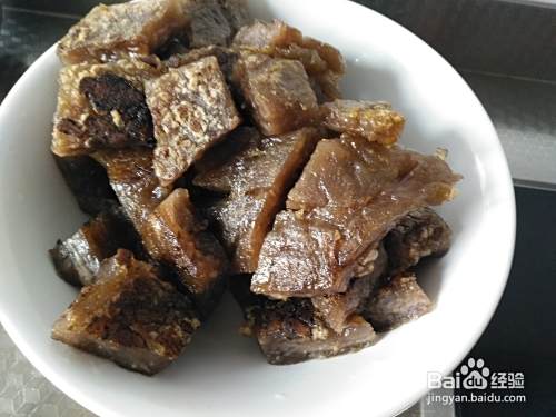 切下一块试吃一下,有着淡淡的红薯粉味道,尽管无盐,但无盐才是美味。最后将其切成块,装入盘中即可啦