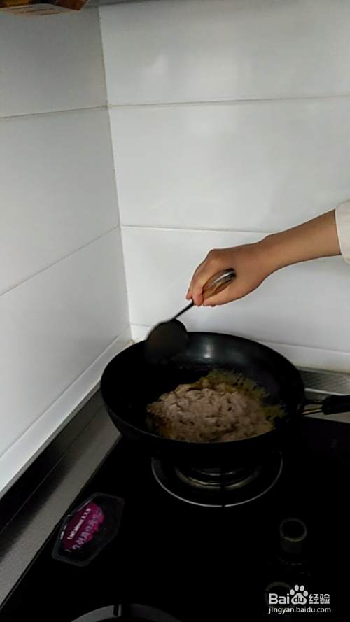 继续使用筷子搅拌,直到即将凝结成固态时,使用锅铲将其沿着锅周围轻轻铲起