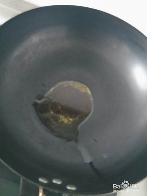 开大火将锅烧热后转中小火,加入适量香油,拿起锅转一圈,使得锅内均铺满香油,这样在制作过程中就不易粘锅