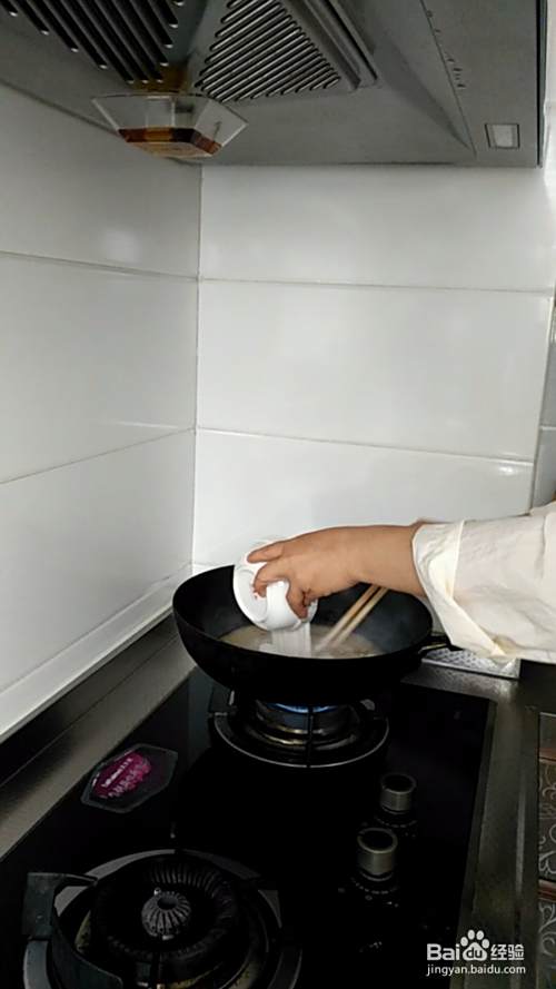 使用筷子搅拌几下,再将红薯粉均匀倒入水中