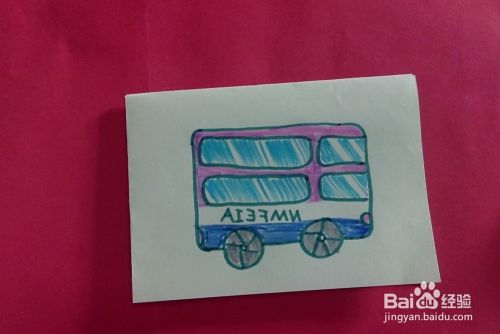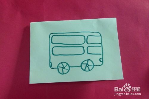 在材料纸的中心部位,画出双层巴士的车身轮廓。