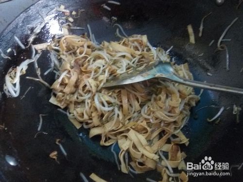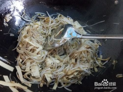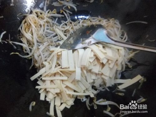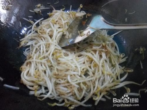 黄豆芽放入锅中翻炒;