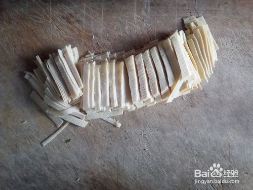 准备食材,干豆腐,切粗丝;
