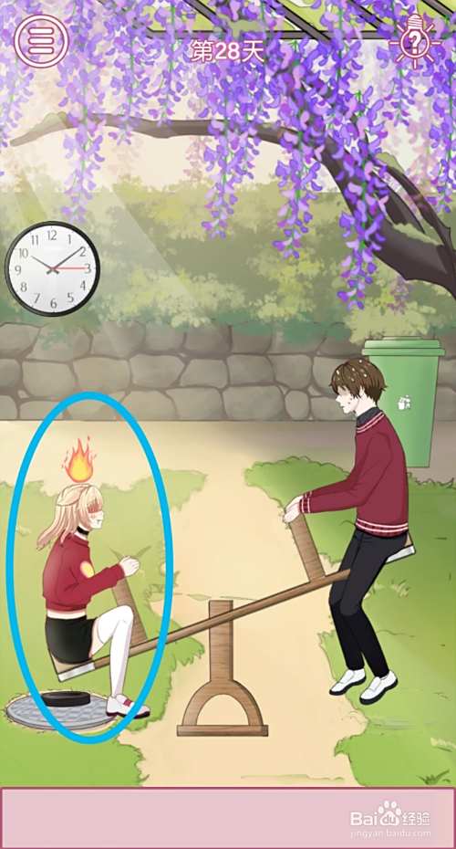 女主不能愉快地玩跷跷板了,就会生气发火,游戏就顺利过关了。
