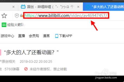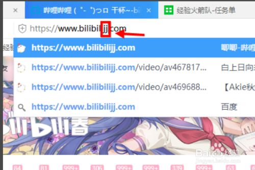接下来回到哔哩哔哩官网,在网址那里.com前方添加jj,如下图所示。