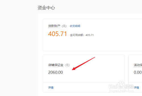 如图在账户上的金额下方,还可以看到店铺保证金,这个是可以退的
