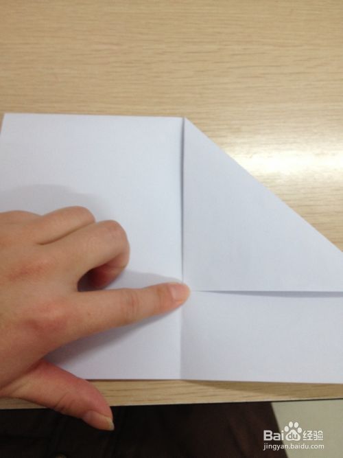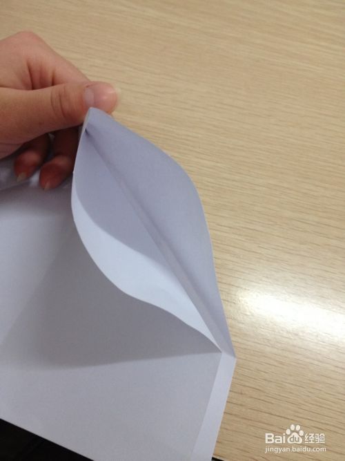 第三步,抓起一角,对准刚刚折过的线。另外一角也是如此。