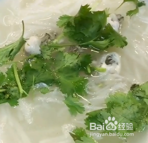 把萝卜丝捞出,放生蚝肉,煮开,放萝卜丝,出锅,撒上香菜即可