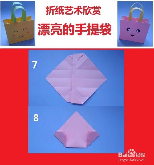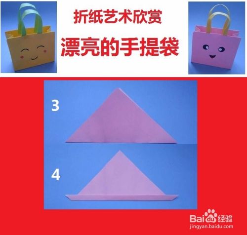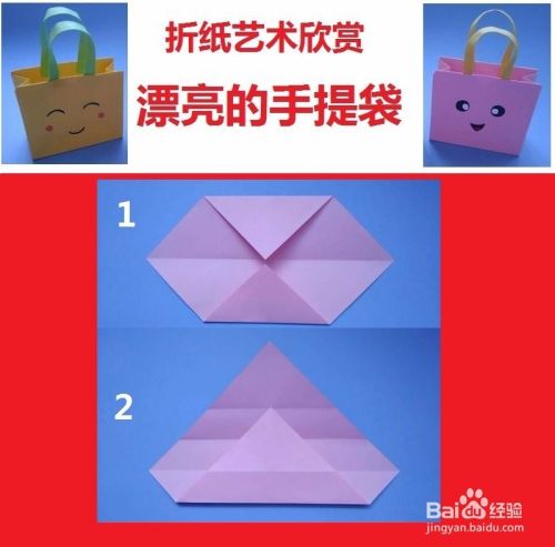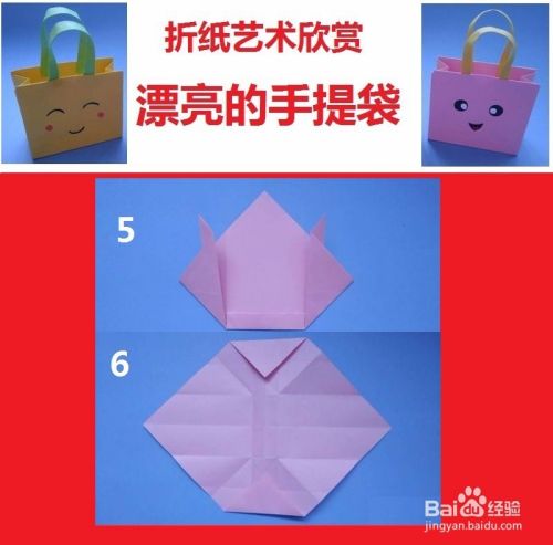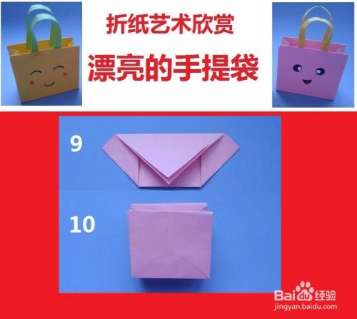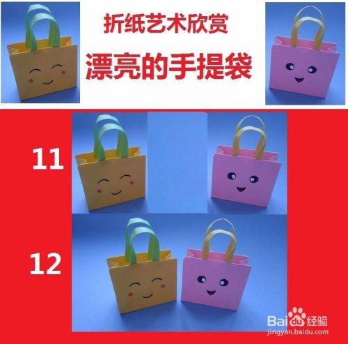 如图粘两片纸条,画上表情,可爱的手提袋就做好了。还可多制作几个漂亮的手提袋,摆出来晒一晒,让大家进行欣赏。
