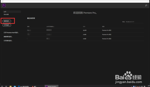 2.进入pr2019主页面后我们点击上方的”新建项目“按钮