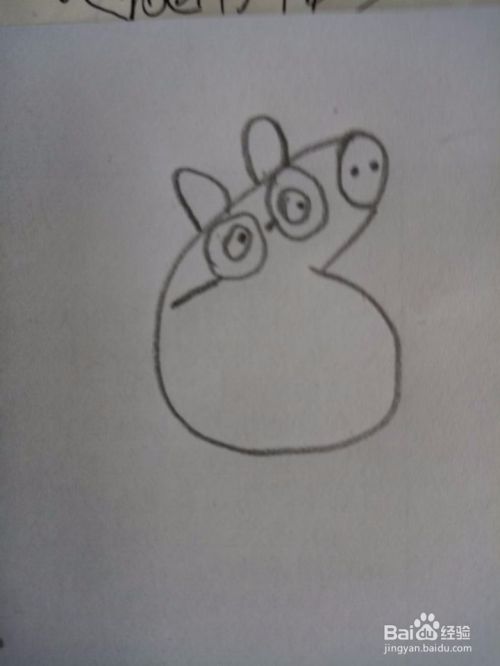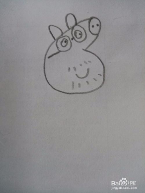 画出猪爸爸的眼睛以及眼镜和耳朵,如下图。