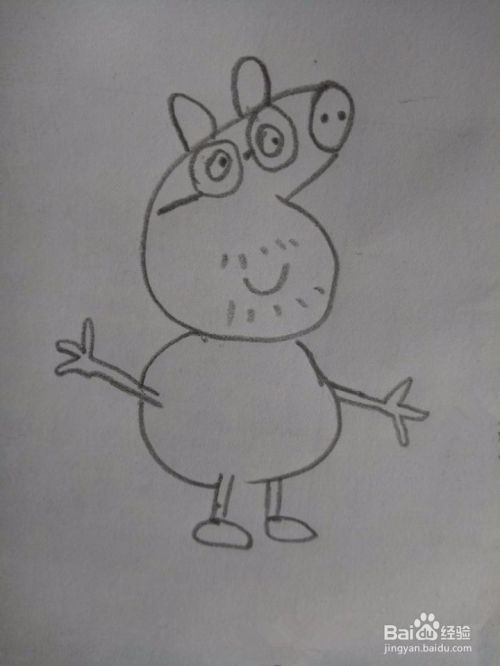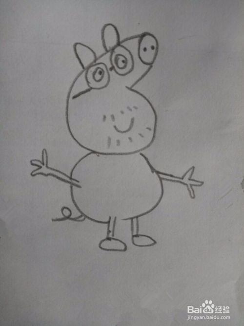 画出猪爸爸的尾巴,如下图。猪爸爸就画好了,如下图。