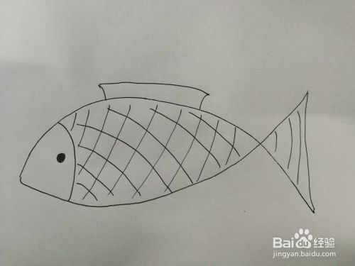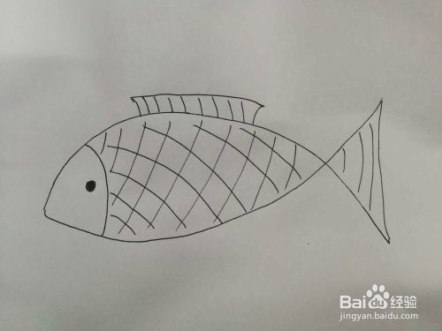 然后给鱼画出鱼鳞,使用交叉画。同时出鱼的背鳍。