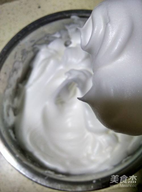 10分三次拌匀,最后一次把面糊倒入蛋白中拌,速度尽量快点,因为我是懒人,为了少洗一个打蛋器因此选择的先打蛋白~~想象一下我现在脸上的怪动作。。