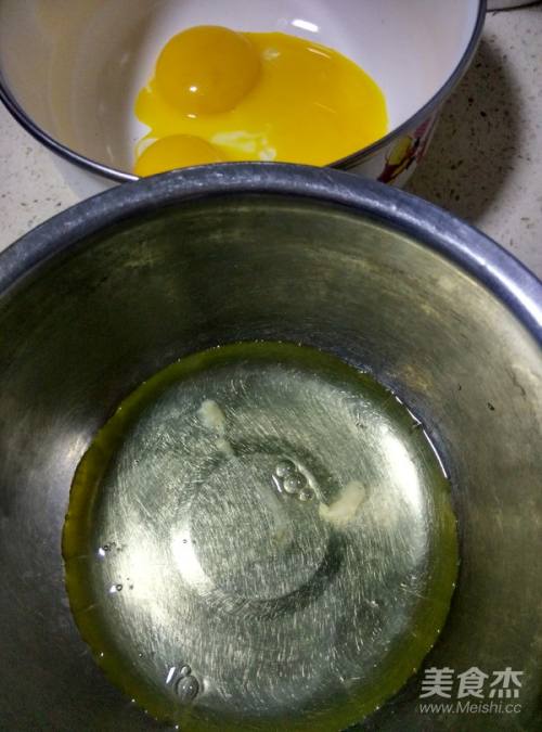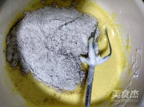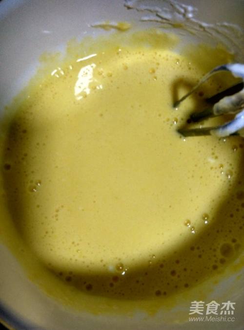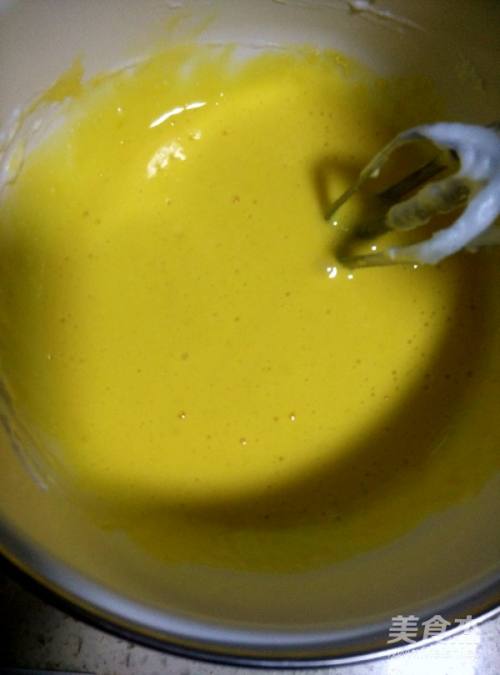 6蛋黄加余下的糖,取一个蛋轴轻轻搅匀