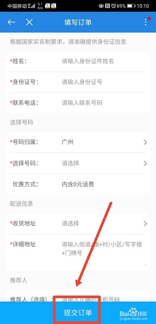 最后输入个人资料,点击提交订单即可。