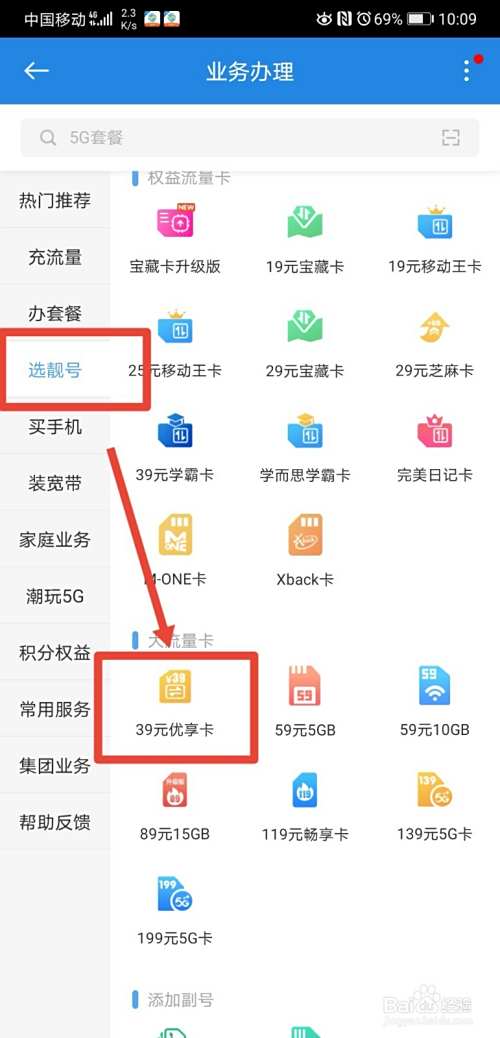 接着再在选靓号功能下选择需要办理的大流量卡;