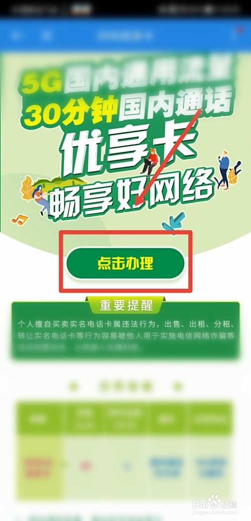 进入到流量卡办理页面后,了解详情后即可点击办理;