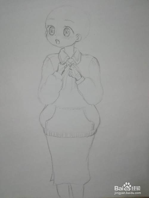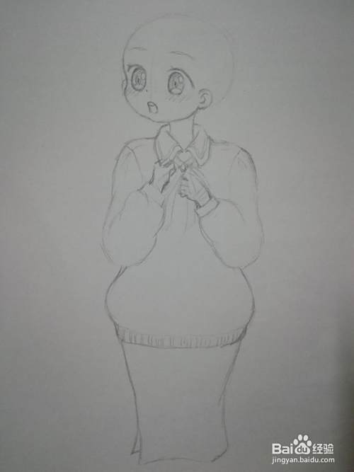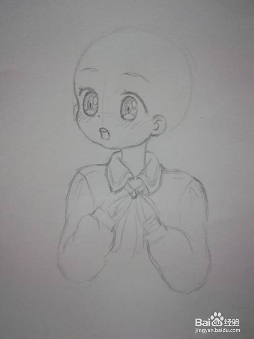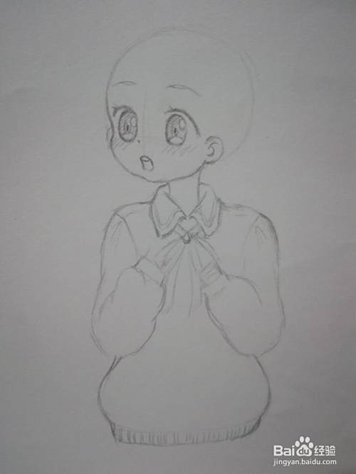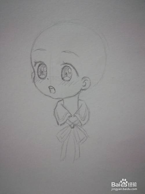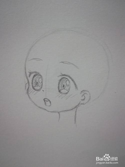 在圆的边边上修出人物的头型和脸型轮廓,然后再画出人物的五官和脖子。