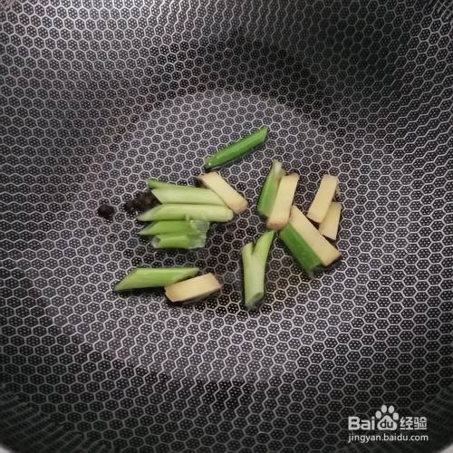 锅中倒入菜油,放入花椒、葱姜炒香。