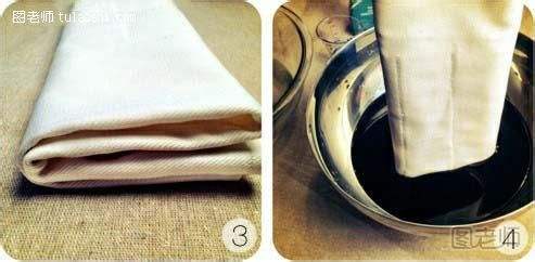 开始蜡染毛刷袋子了:先准备好专用蜡染颜料,装满5杯冰水,一个碗,填补其他一碗滚烫的水5杯和汤匙盐或醋