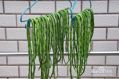 将沥干水分的豇豆搭在衣架或绳子上,也可以直接摊开在垫子上,放在阳光充足的地方晾晒(天气好的话两三天就可以干透)
