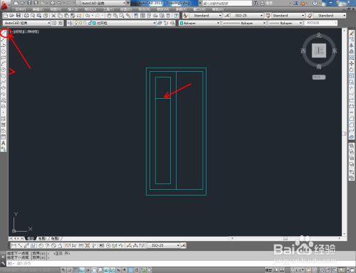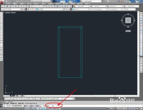 点击【矩形工具】在图示位置绘制一个矩形图案后,点击【偏移】,在命令栏中输入:80,对矩形图案进行向内偏移(如图所示);