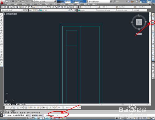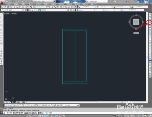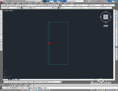 点击右边工具栏中的【偏移】,在命令栏中输入: 50,选中图案侧边和顶边,依次对侧边和顶边进行向内偏移。在命令栏中输入:80,选中底边,将底边进行向上偏移(如图所示);