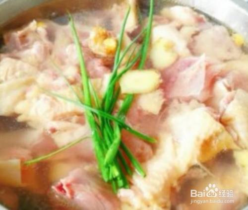 凉水上锅,加料酒和葱结、姜片焯水三分钟。