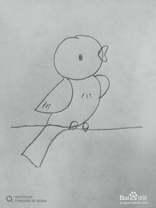 第七步,最后画小鸟的两只脚。