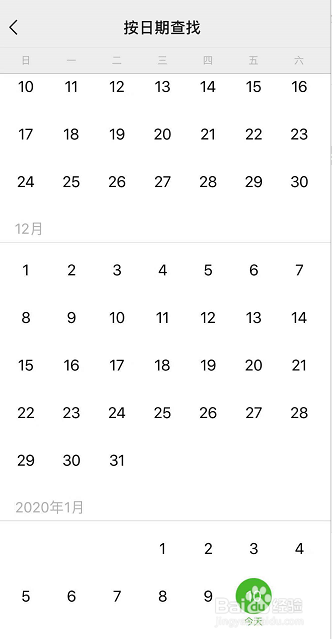 当我们点击了日期选项之后,我们就会进入到按日期查找聊天记录的页面中,可以看到最后一个日期是当天的,我们只需要上滑点击历史的日期即可查看历史的聊天记录详情。