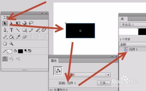 此时,库面板内就有了这个新的元件,名字和舞台上的名字【在属性面板内】一模一样。