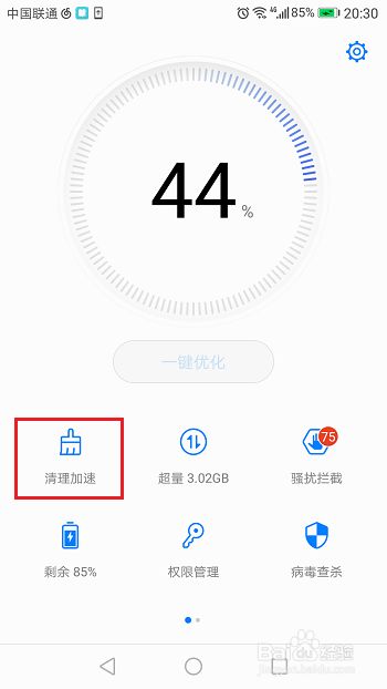 第二步进去手机管家界面之后,点击下方的清理加速,如下图所示: