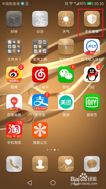 第一步在我们的手机里面找到手机管家,点击进去,如下图所示: