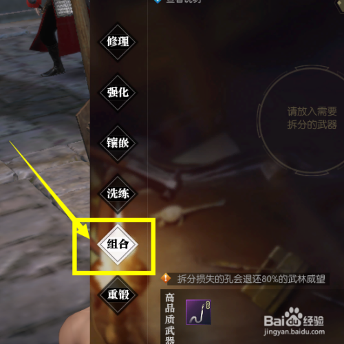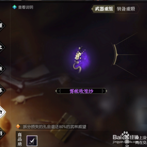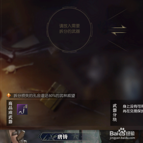 左键点击左下的我们要拆分的紫色武器就可以把武器放进去了。