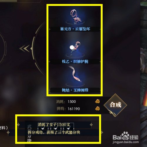点击右侧的拆分按钮消耗一定的交子,就可以把武器拆分成三个分区了。