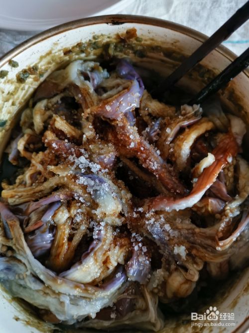 茄子丝放入皮蛋辣椒泥中,?生抽?糖?盐(少许)