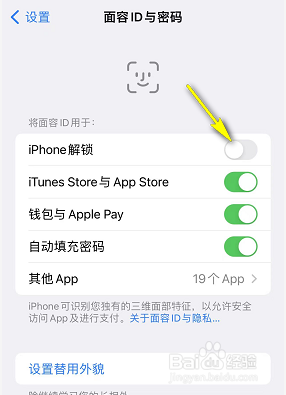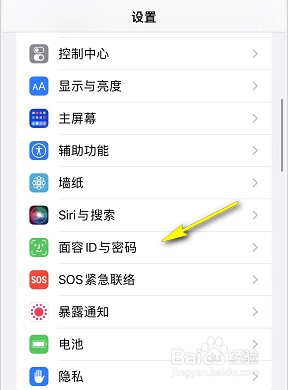 进入iPhone主界面,点击面容ID与密码进入,如下图所示