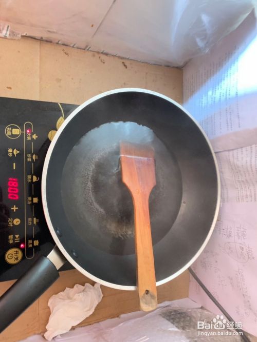 然后洗锅,小编习惯先将水烧开烫下锅,这样可以减少油渍。并且将锅擦干,热锅,等锅开始冒烟之后再倒油