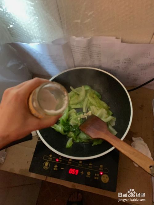 热锅冷油,待油开始升温就将生菜放入锅中,10秒后翻炒