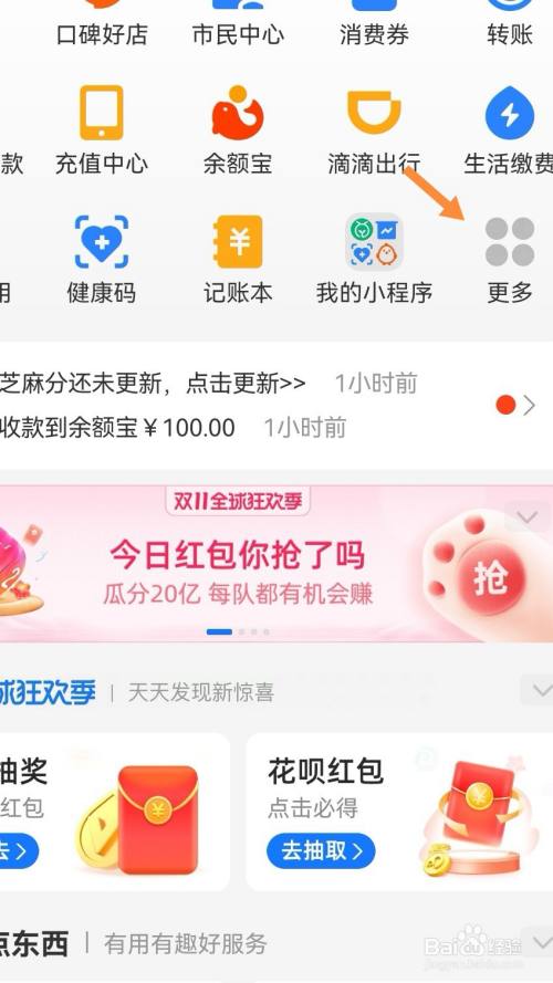 进入支付宝首页,点击右侧边的更多选项进入